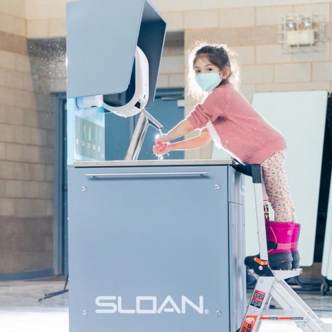 后疫情時代,為了自己和他人的健康,人們洗手的意識也逐漸提高。更多人次、更高頻率、更長時間的洗手需求使得學校里原有的為數不多的、固定的洗手間可能并不夠用。例如,美國的伯恩哈德·穆斯小學面對的問題是,用餐前后,在食堂這一人流量大的場所的衛生間洗手,往往擁擠而倉促。作為一所知名國際學位學校,當428名學生結束為期數月的線上教學后返校時,學校首先需要確保其校園環境足夠安全和衛生。在經過考察之后,學校選擇了SLOAN仕龍移動式洗手臺,移動洗手臺分擔了前往洗手間的人流,不僅使洗手更加便捷,還能更好地管理衛生間中的社交距離。