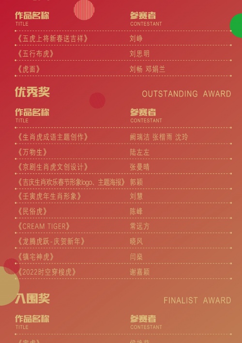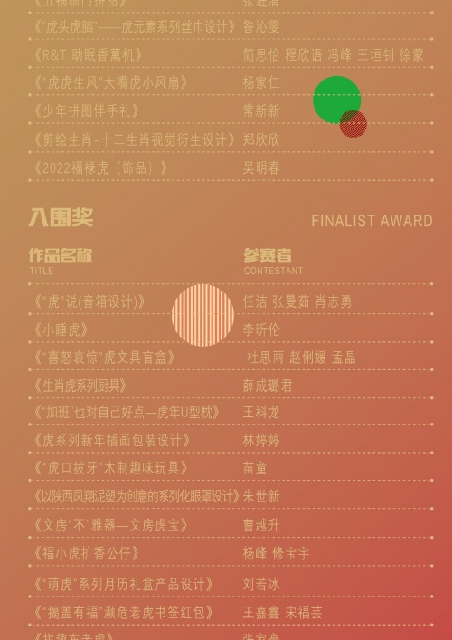 以下為部分獲獎作品的創意設計,詳情請查看www.jiqingshengxiao.com 2022全球吉慶生肖設計大賽(壬寅虎年)獲獎作品公示。