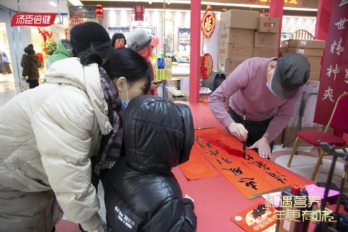 書法大師姚斌老師即席揮毫,為現場顧客謄寫春聯