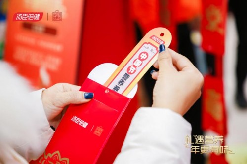 【新年開運區】好運連連抽喜氣,在紅包墻參與互動的顧客,都能獲得湯臣倍健新春折扣或著新春紀念禮品。
