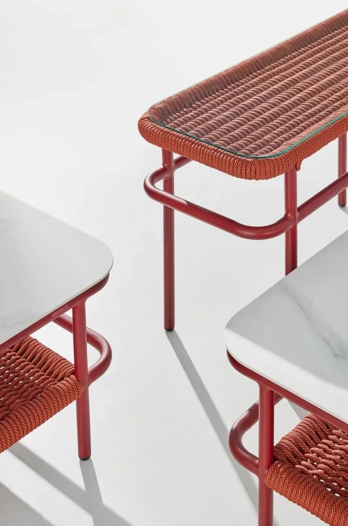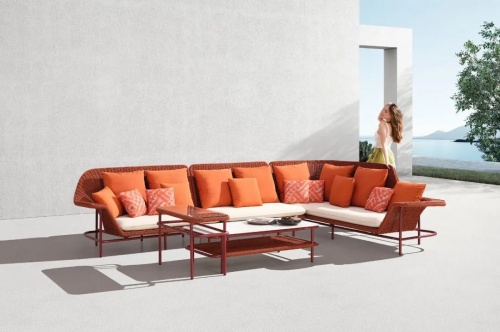 慷慨的比例,舒適和通風(fēng),基于一個(gè)堅(jiān)實(shí)的和優(yōu)雅的鋁框架基礎(chǔ),一個(gè)彩色繩帶穿梭其中。技藝精湛的編織工匠把這份柔軟曲線呈現(xiàn),一個(gè)邀請(qǐng)您體驗(yàn)地中海式放松的扶手沙發(fā)應(yīng)運(yùn)而生。