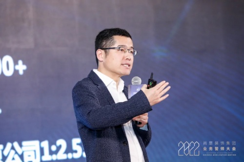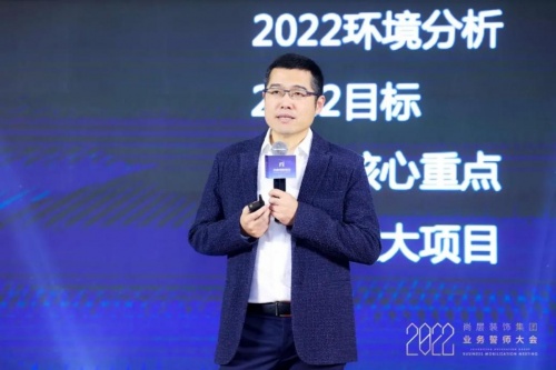 主持人致開(kāi)場(chǎng)辭后,首先由尚層裝飾集團(tuán)董事長(zhǎng)/總裁林云松總結(jié)了2021年的關(guān)鍵數(shù)據(jù),分析了數(shù)據(jù)創(chuàng)新高背后的關(guān)鍵及2022年的環(huán)境分析,提出了2022年的奮斗目標(biāo)并做出戰(zhàn)略部署。