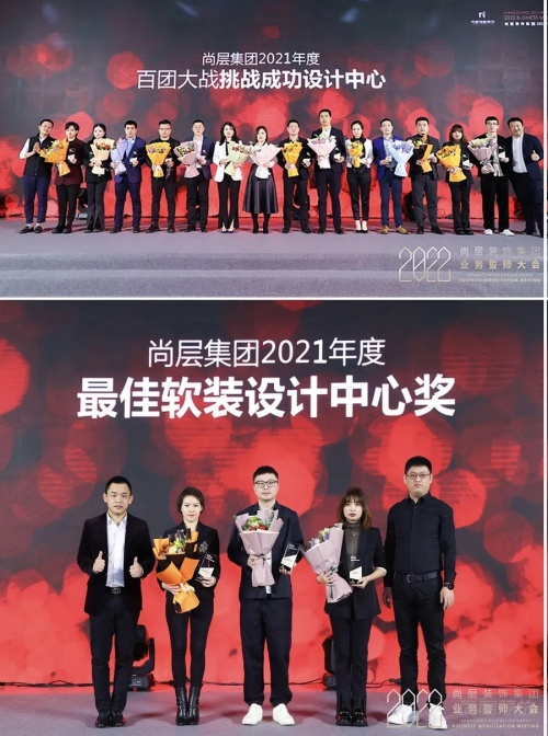 此次誓師大會(huì),集團(tuán)總部頒發(fā)了2021百團(tuán)大戰(zhàn)挑戰(zhàn)成功獎(jiǎng)、最佳軟裝設(shè)計(jì)中心獎(jiǎng)、最佳增長(zhǎng)中心獎(jiǎng)、最佳設(shè)計(jì)中心業(yè)績(jī)獎(jiǎng)、優(yōu)秀部門獎(jiǎng)、優(yōu)秀高層管理者獎(jiǎng)、優(yōu)秀分公司獎(jiǎng)和年度尚層人物8項(xiàng)榮譽(yù)獎(jiǎng)項(xiàng)。