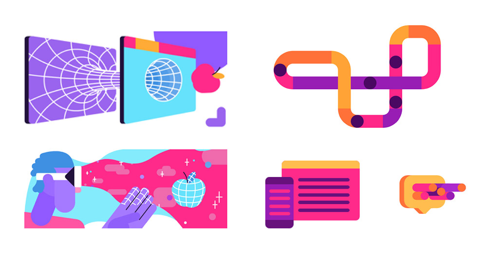 最后,Mozilla還發布了一系列基于產品圖標演變的幾何圖案,這些圖案可以制作出漂亮的web頁面背景、產品插圖以及動態圖形。
