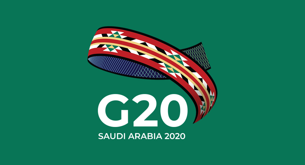 2020年沙特阿拉伯舉行的G20 峰會會徽的圖形和顏色的靈感來自傳統的貝都因人紡織用的彩色絲線和沙特阿拉伯國旗的顏色,整體造型類似一條色彩斑斕的頭巾。?