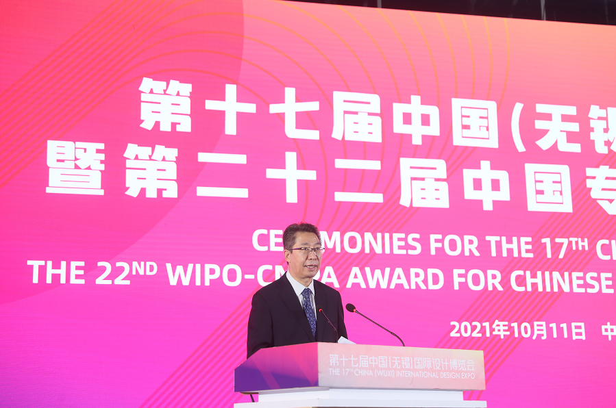 10月11日,第十七屆中國(無錫)國際設計博覽會開幕,第二十二屆中國外觀設計金獎在開幕式上頒發 。國家知識產權局局長申長雨、江蘇省副省長胡廣杰、無錫市市委書記杜小剛出席開幕式并致辭。世界知識產權組織(WIPO)總干事鄧鴻森通過視頻向大會致辭。國家知識產權局副局長甘紹寧宣讀了第二十二屆中國專利獎(外觀設計)授獎決定。國家知識產權局專利局副局長胡文輝、WIPO中國辦事處主任劉華出席。開幕式由無錫市代市長趙建軍主持。