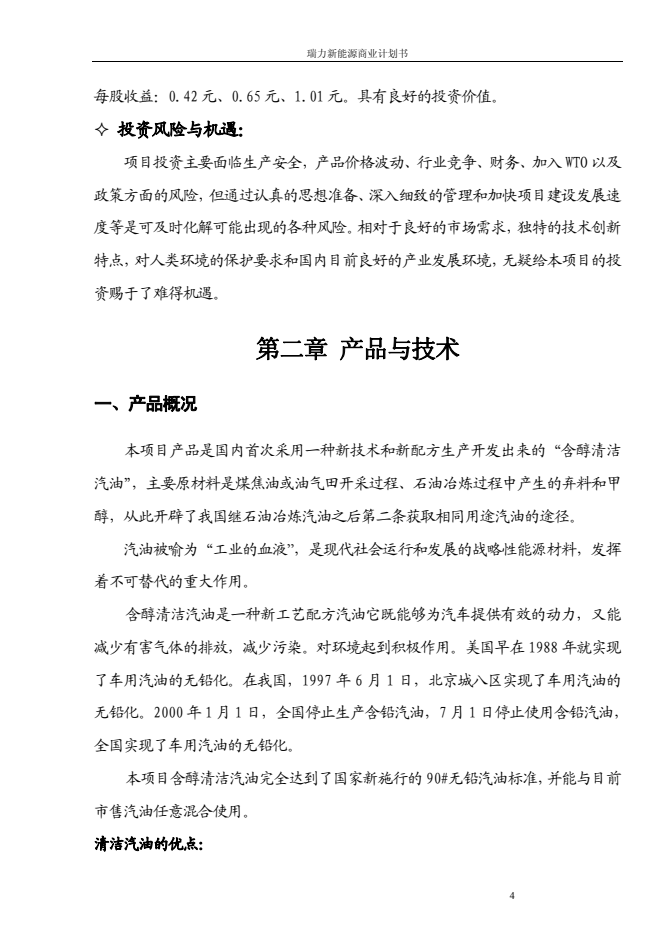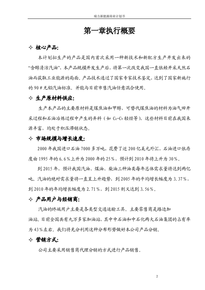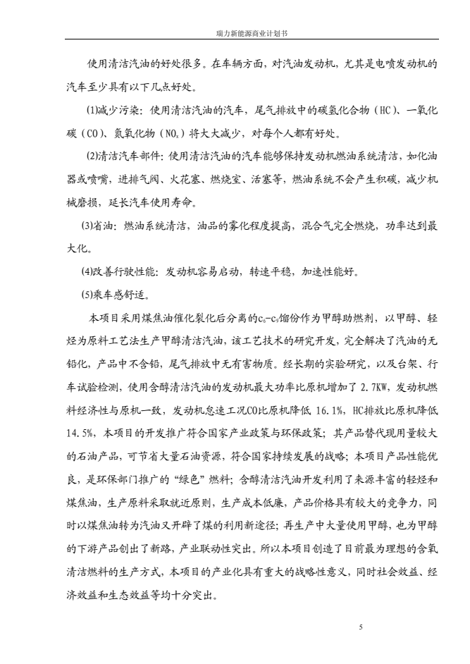 瑞力含醇清潔汽油新能源商業計劃書
